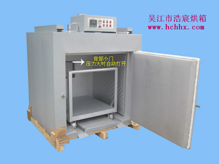9、烘箱后設置安全防爆門,當箱內壓力超過一定壓力即自動開啟避免爆炸。